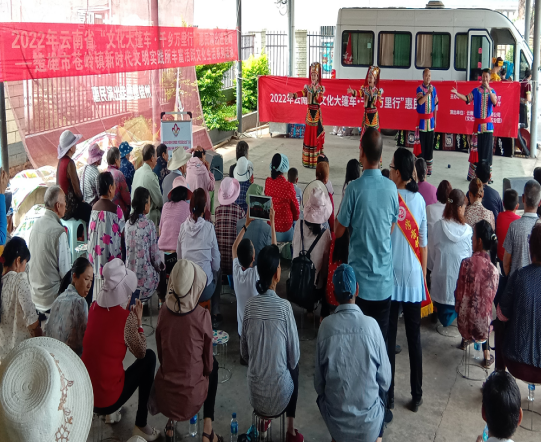 为满足广大人民群众日益增长的精神文化需求,丰富农村文化生活。近日,苍岭镇新时代文明实践所借省文化和旅游厅、省财政厅主办的2022年云南省“文化大篷车·千乡万里行”惠民演出的契机,提前准备做好广泛宣传。8月3日,整场演出在苍岭镇红星湖文化活动广场和李家村委会前马房村分别举行。活动共吸引1100多人前来观看,许多群众放下手中农活前来并参与互动,现场气氛热烈,不断传达阵阵掌声。
