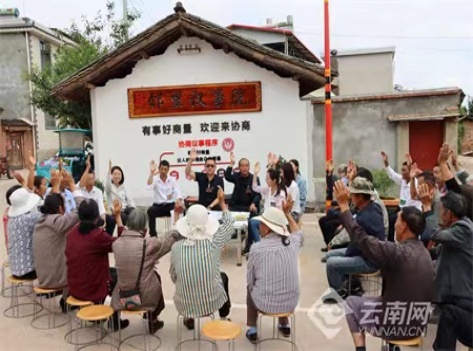 “每家投5个义务工,我也同意呢。”群众代表周家明说。“确定这两条路为牲畜上山放养的路”,党员代表罗启顺举手赞成......一场由党员代表、人大代表、政协委员、群众代表、少数民族代表组成的协商议事会正在黄草村村委会红光队小组的“邻里议事院”热烈讨论着。大家围绕农村人居环境如何形成长效管理制度、门前三包制度和党员责任区如何划分、投工投资要投多少、奖惩制度如何定等4个问题进行协商议事,最终形成协商议事决议,共同制定了《红光队垃圾清运收费制度》《红光队牲畜家禽管理制度》《红光队义务劳动奖惩制度》《红光队“五颗星”评选制度》等办法,为农村人居环境提升整治工作奠定了坚实基础。