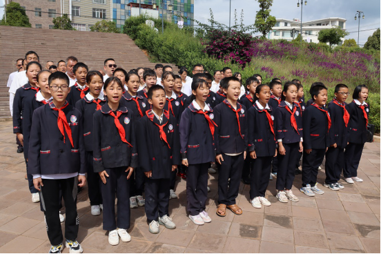 随后,30余名少先队员面向田心阻击战纪念碑献唱《我们是共产主义接班人》。