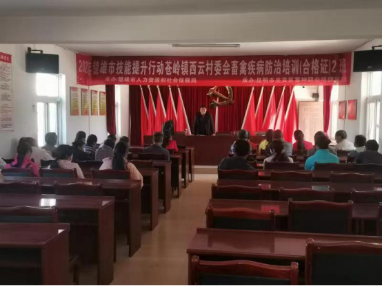 为持续提升农村贫困劳动力技能水平,拓宽创业就业渠道,促进畜禽养殖健康发展,实现家庭增收。苍岭镇在楚雄市人力资源和社会保障局的支持下,组织开展了为期8天的畜禽疫病防控技能培训。