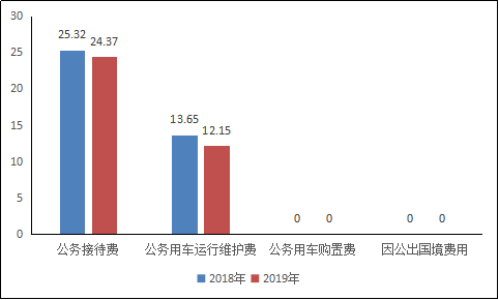 2019年度一般公共预算财政拨款“三公”经费支出决算中,因公出国(境)费支出0万元,占0%;公务用车购置及运行维护费支出12.15万元,占33.29%;公务接待费支出24.37万元,占66.71%。具体情况如下: