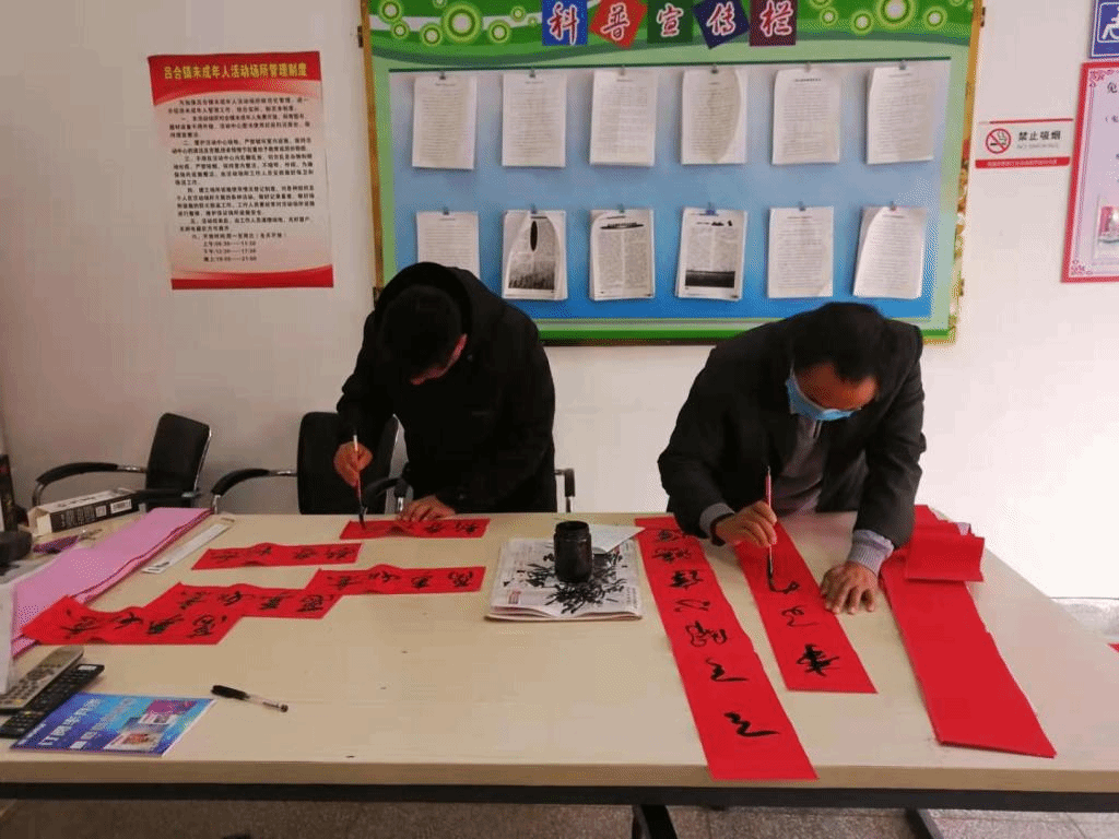 每逢新春佳节到来之际,吕合镇文旅中心都会组织开展写春联、送春联、送祝福活动,在弘扬传统民间文化的同时,也为老百姓提前带来了节日的喜庆气氛和送去祝福。本次活动我们共送出春联260余副,让群众感受到了吕合镇大家庭的温暖,也为群众搭建了一座沟通的桥梁。