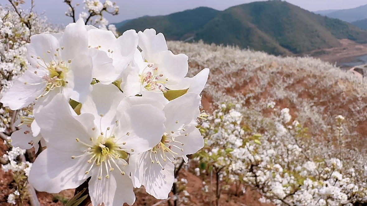 近日,随着气温回暖,楚雄市吕合镇干田村的万亩梨花竞相绽放,放眼望去,漫山遍野的梨花洁白如雪,层层叠叠,将整个村庄装点成一片梦幻的花海,成为春日里一道亮丽的风景线。
