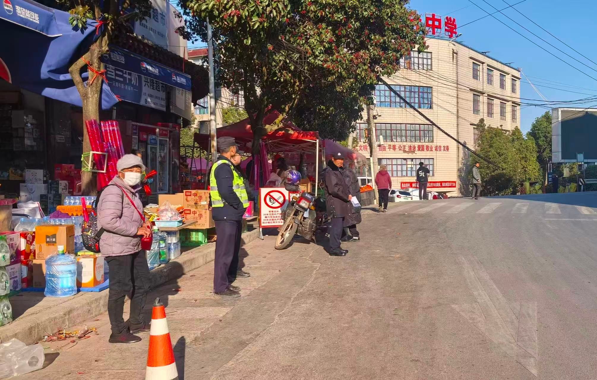 多部门联动暖心护航,平安有序筑牢节日根基。在这浓浓的年味背后,是各部门的暖心守护。民警加强巡逻防控,守护一方平安;环卫工人坚守岗位,清扫清运垃圾,擦亮乡村“颜值”;市场监管人员穿梭于集市摊位,检查商品质量、规范经营秩序。多部门协同发力,为即将到来的新春佳节筑牢安全防线,让群众买得放心、过得舒心。