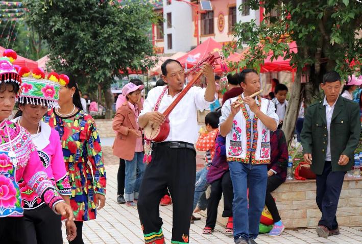 奏出文化振兴之“声”。大地基乡坚持把党的理论与民族文化相结合,通过文艺汇演等形式传递“民族团结一家亲”的浓厚氛围。三弦、二胡、竹箫……每一个乐器都是民族文化的“标识”,见证着各民族的共同发展、共同繁荣。在当地流传着这样一句话:“会说话就会唱歌,会走路就会跳舞。”每逢节日,当地群众就会聚集到一起,载歌载舞,拿着三弦、月弦、二胡、葫芦笙跳着“大街戏、蹩脚戏”,把优秀传统文化融入文艺汇演中,准确直观地表达着“中华民族一家亲,同心共筑中国梦”的伟大实践。