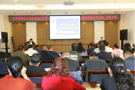 ——聆听主题党课。10月31日上午,邀请市委党史研究室丁卫华同志为市政府办全体干部职工讲授中国共产党党史。授课期间,丁卫华老师穿插了革命传统教育、先进典型教育和警示教育。通过学习,进一步深化了全体干部职工对国情、党情的认识,夯实了理想信念,进一步增强了“干在实处,走在前列”大比拼干劲。