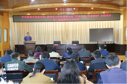 按照《中共楚雄市委关于开展“不忘初心、牢记使命”主题教育的实施方案》的文件要求,10月29日晚至31日,中共楚雄市人民政府办公室党组 “不忘初心、牢记使命”主题教育第二期集中学习读书班完成各项学习任务,圆满结束。