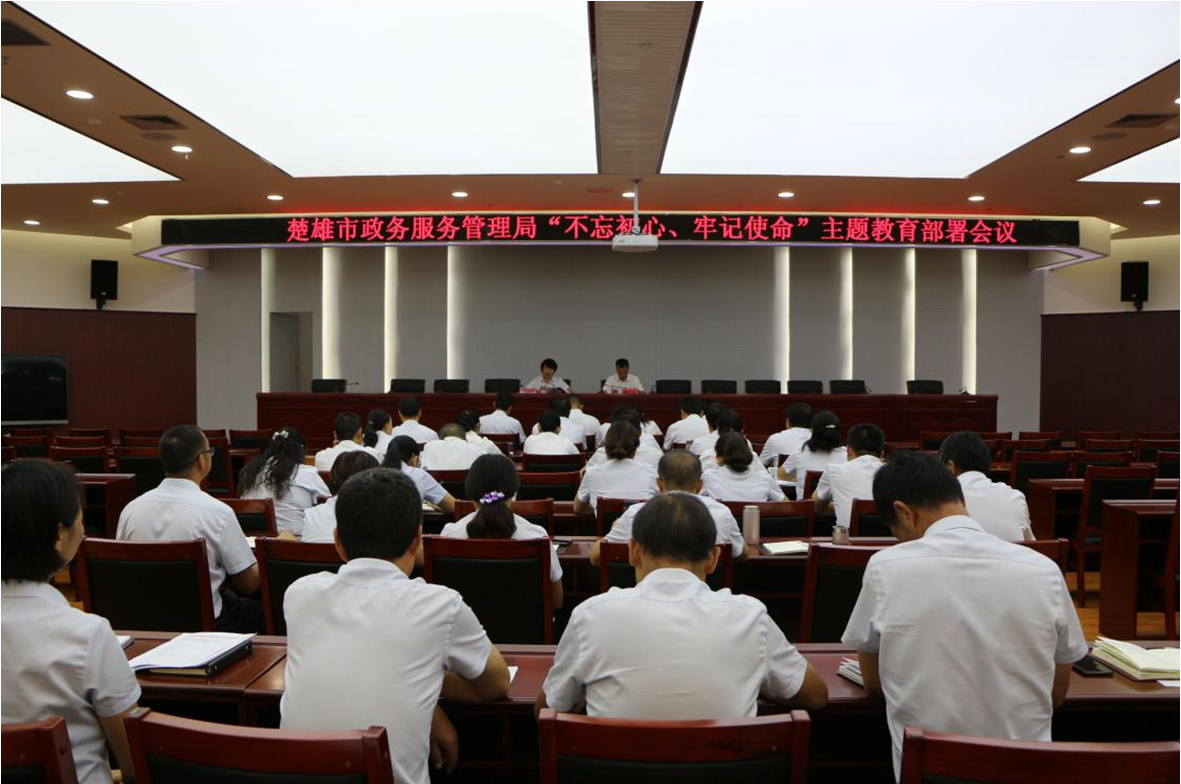 近日,按照市委的统一安排部署,市政务服务管理局召开“不忘初心、牢记使命”主题教育部署会议,深入学习贯彻习近平总书记关于“不忘初心、牢记使命”主题教育重要讲话和重要指示批示精神,贯彻落实中央和省、州、市“不忘初心、牢记使命”主题教育部署会议精神,对主题教育进行动员部署。局党组书记张林颖主持会议并作动员部署讲话,市委第九巡回指导组到会指导。