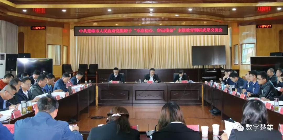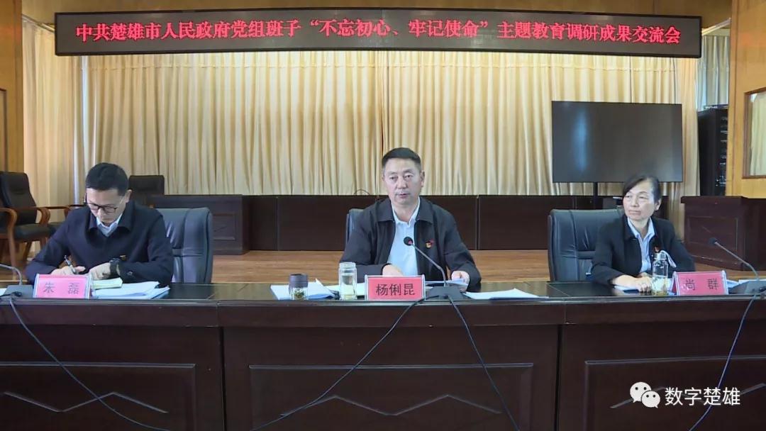 11月4日上午,市委副书记、市政府党组书记、市长杨俐昆主持召开市政府党组班子“不忘初心、牢记使命”主题教育调研成果交流会。会议强调,要坚持聚焦主题主线,交流调查研究成果、提出工作思路举措,把主题教育的成效转化为落实党中央及省委、州委和市委重大决策部署的实际动力,推动楚雄市高质量跨越式发展。