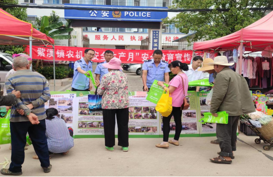 6月24日,紫溪镇利用大石铺街天开展了以“遵守安全生产法,当好第一责任人”为主题的“安全生产月”宣传活动。