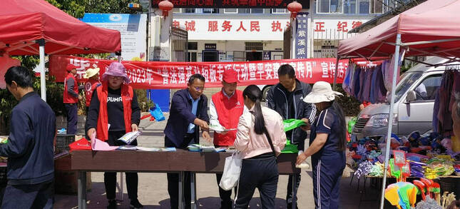 为进一步加强紫溪镇平安建设,推动普法强基补短板工作,动员全镇广大群众参与平安建设,提高广大群众的法律意识,近日,紫溪镇组织司法所、综治办、派出所、农业农村服务中心、文化旅游服务中心等部门利用集镇日组织开展了“普法强基补短板暨平安建设宣传月”集中宣传活动。