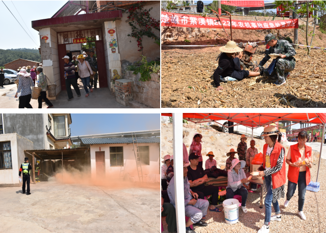 综合避险演练中,同步开展了突发火险、医疗救援、地质灾害、电路故障、食品安全、农机事故等多项紧急情况的应急演练。