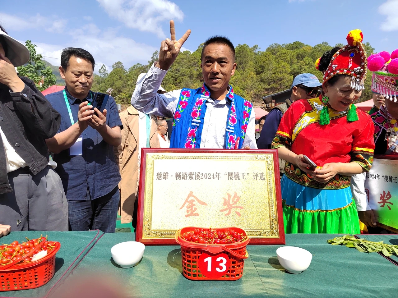 4月20日上午,“畅游紫溪·樱你桃醉”2024年楚雄紫溪樱桃文化旅游节开幕式在紫溪镇紫金村大紫溪特色农产品交易市场举行。伴随着精彩的文艺演出,村民、游客聚在一起,一边庆祝丰收的喜悦,一边品尝美味的樱桃。