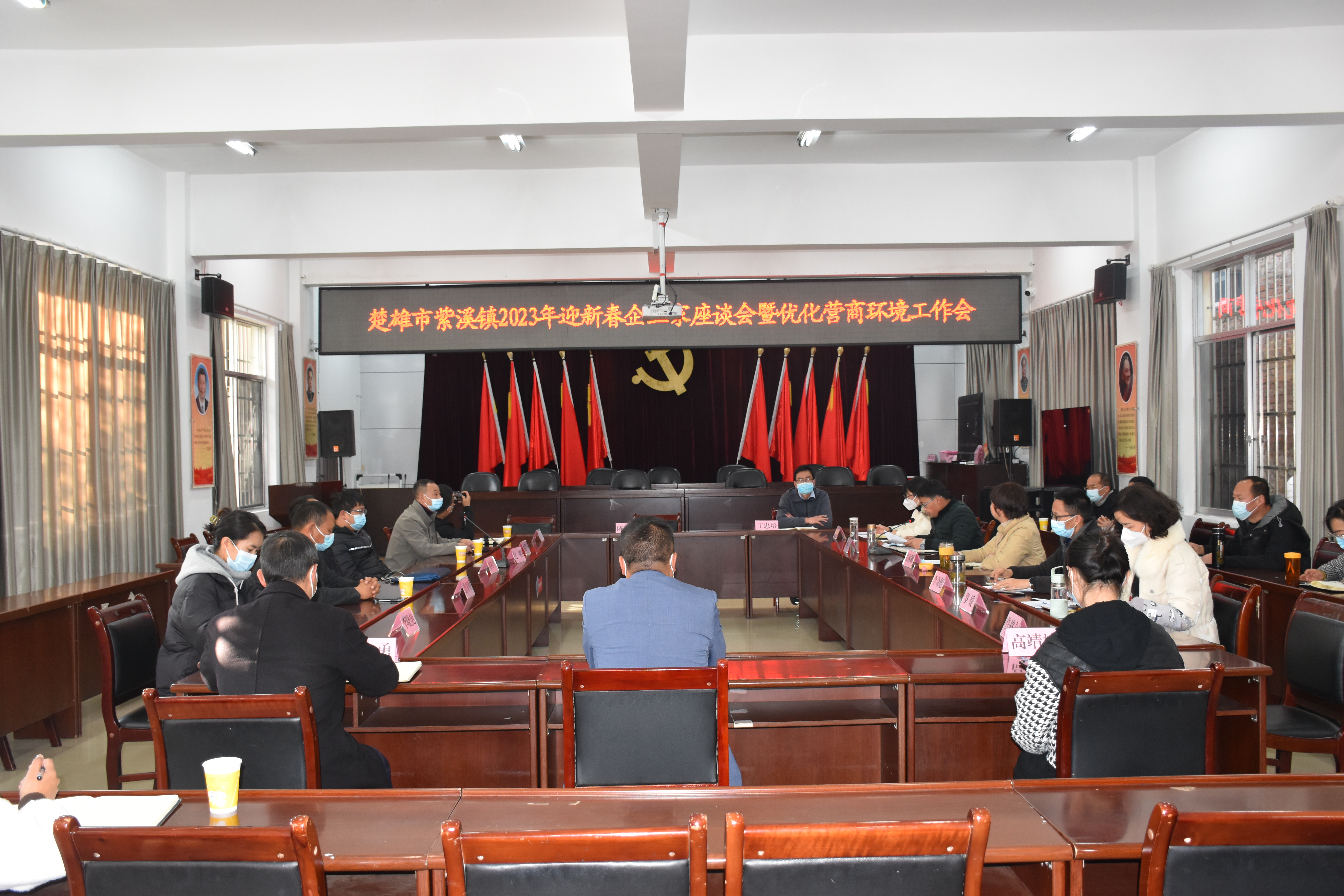 为深入学习贯彻党的二十大精神,厚植优质营商环境“土壤”、激发市场主体活力,推动作风革命、效能革命融入于经济社会发展的全过程、各方面。1月17日,楚雄市紫溪镇召开2023年迎新春企业家座谈会暨优化营商环境工作会。镇党政班子成员、各站所负责人、部分受邀企业和个体工商户欢聚一堂,共迎新春、共叙情谊、共话发展、共谋未来。