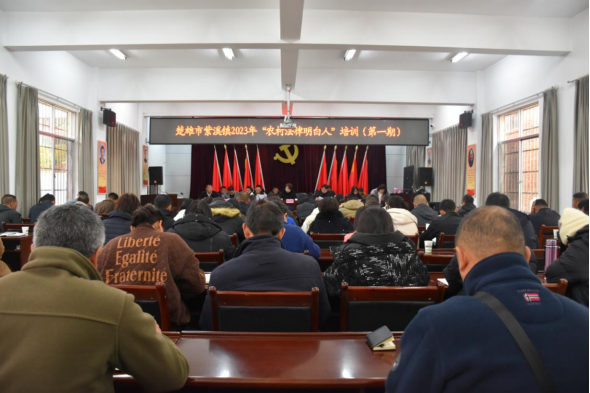 为深入推进法治紫溪建设,认真落实紫溪镇“八五”普法规划及紫溪镇 2023 年普法强基补短板专项行动要求,进一步提升农村“法律明白人”法治化水平,充分发挥“法律明白人”在法治建设中的职能作用,扎实推进 2023 年普法强基补短板专项行动深入开展,紫溪镇于 2023 年 3 月 22日借“万名党员进党校”东风举办了农村“法律明白人”培训班,紫溪镇辖区村(社区)培养的44名“法律明白人”、各支部党员代表及各站所长共133人参加了培训,会议由镇人民政府镇长刘应文主持。朱刚副镇长全面安排了 2023 年普法强基补短板专项行动工作和八五普法工作。