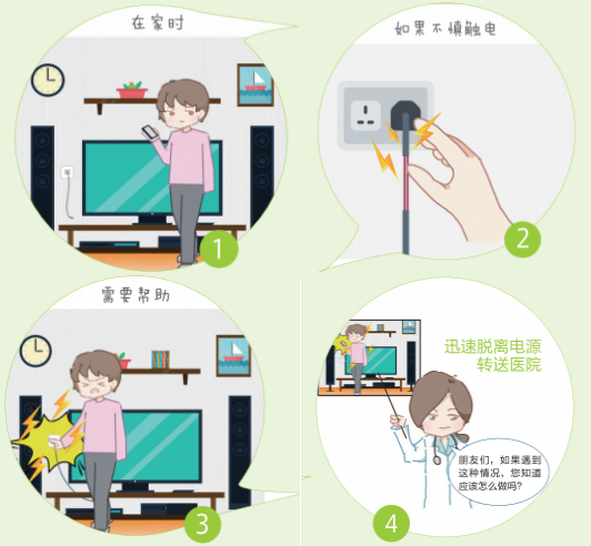 ②帮助触电者迅速脱离电源:根据触电现场情况,选取最安全有效的方法,如:(1)关闭电源或者拔掉插座;(2)挑开电线,在周边找到干燥的竹竿或者木棒等绝缘物品,将触及触电者的电线挑开,妥善处置挑开的电线,以免再触及他人;(3)切断电线:如果急救者不能接触触电者或者不便挑开电线,可以用绝缘钳子、干燥带木柄的斧头或锄头斩断电线,中断电流后妥善处置电线;(4)拉开触电者:如果触电者俯卧在电线或漏电的电器上,可以用绝缘的木棒或绳索将触电者拉离电源。