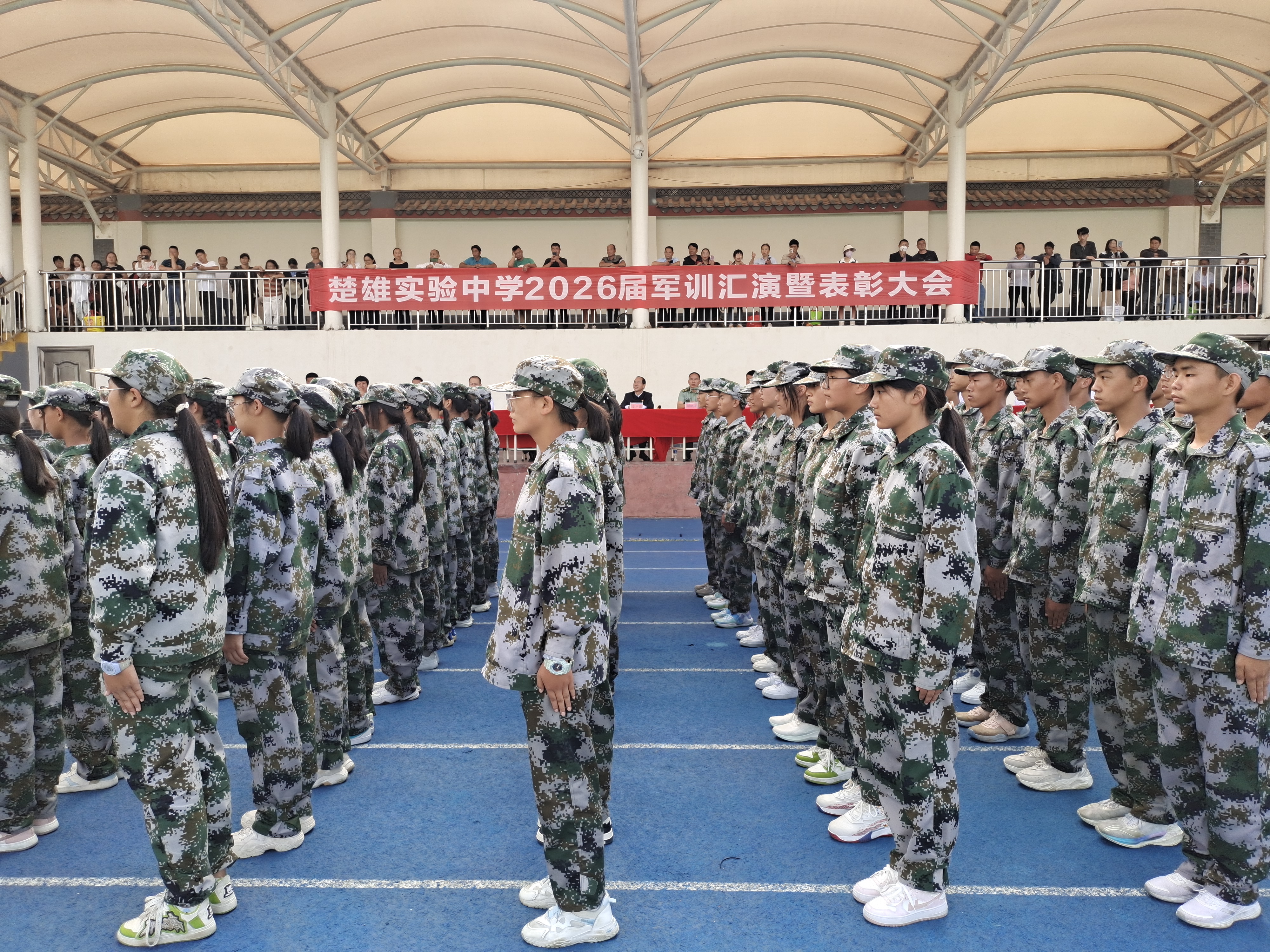 “开学第一天就是军训。军训虽然很苦很累,但也是我们人生中的一次考验,军训锻炼了我们的意志品格,增强了我们的国防观念,激发了我们的爱国热情,让我们明白了什么是责任担当,什么是团队意识。”9月7日,在楚雄实验中学举行的2026届新生国防教育综合检验汇报展示中,该校高一3班学生鲁怡云同学说。