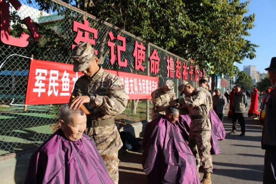 楚雄市鹿城镇栗子园社区是水库移民搬迁安置,针对小区老年人多的实际,武警楚雄支队在走访中得知,老年人外出理发不方便的情况后,及时成立为民服务队,用真诚和爱心为老年人们送去了温暖和欢笑。