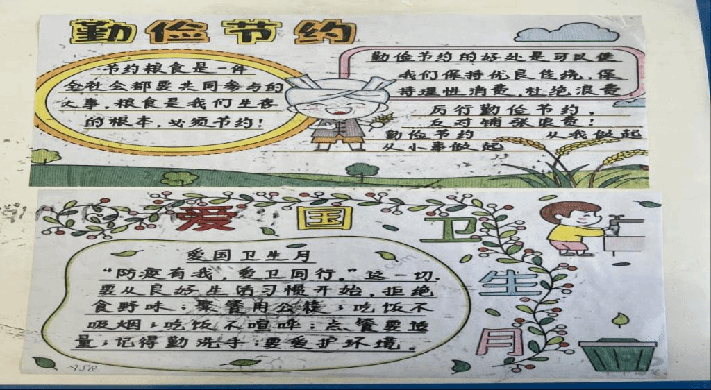 三是宣传进校园,小手拉大手,营造浓厚氛围。坚持宣传与教育教学同开展,乡食安办组织食品安全知识宣传与爱国卫生“7个专项行动”宣传进校园,不断提高教师和学生群体的食品安全意识和卫生意识,增强食品安全知识学习,强化预防食物中毒意识与能力。学校通过美术课开展节约粮食、禁止浪费,倡导公筷公勺,预防野生菌、草乌中毒等主题手抄报活动,将学生制作的个性宣传手抄报张贴在学校食堂内,分享给家长,小手拉大手,进一步提高宣传效果,营造全民参与的宣传氛围。