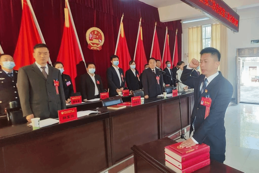 大会严格遵守法定程序,经过充分酝酿,圆满完成了既定的选举任务,依法选举杨顺高同志担任大地基乡第十二届人大主席团主席,乡党委书记杨申虎向杨顺高颁发了当选证书,举行了向宪法宣誓仪式,杨顺高代表乡人大主席团作了表态发言。