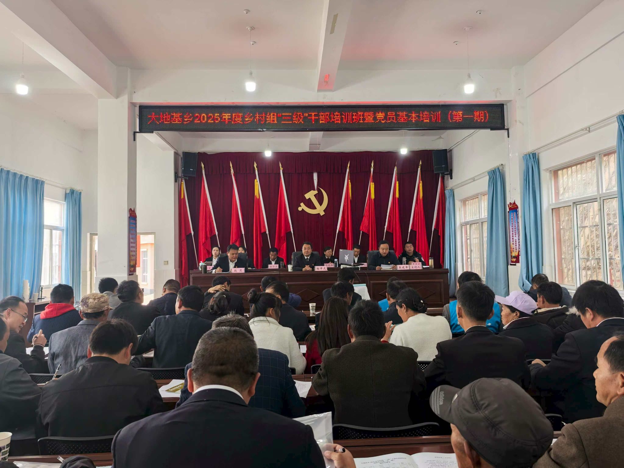 聚焦党建引领,加强民族团结进步“基本盘”。大地基乡始终坚持把学习贯彻习近平总书记关于加强和改进民族工作的重要思想作为重大政治任务,并将其纳入大地基乡党员干部教育培训内容,结合“三会一课”、主题党日等时机,广泛开展民族政策理论学习。成立由乡党委、乡人民政府主要领导担任双组长、村委会书记任副组长,各村民小组长任成员的民族团结进步示范村创建工作领导小组,明确工作职责,责任落实到村、任务延伸到组,形成创建工作有人管、有人抓的良好工作格局。