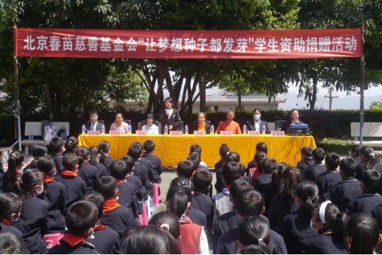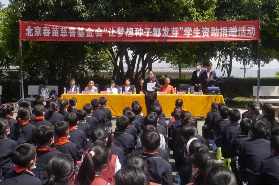 2021年4月23日,北京春苗慈善基金会到大地基乡开展“让梦想种子都发芽”爱心捐赠活动。11点30分,北京春苗慈善基金会副秘书长孙莹女士一行在楚雄市少先队总辅导员董云华老师的陪同下,带着和蔼可亲的笑容向学生们走来,大地基乡中心完小195名学生热情高涨,捐赠活动在一片热烈的掌声中顺利进行。