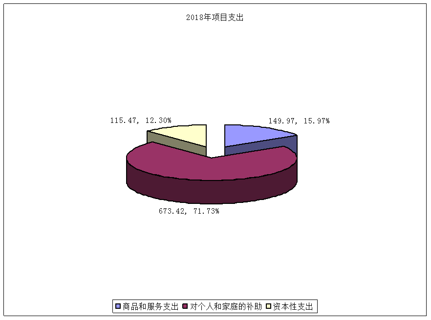 2018年度用于保障新村镇机关事业单位为完成特定的行政工作任务或事业发展目标,用于专项业务工作的经费支出938.86万元。与上年对比,2017年项目支出1515.26万元,同比减少38.03%。减少主要原因是2018年无政府性基金预算财政拨款收入。包括商品和服务支出149.97万元占比15.97%,对个人和家庭的补助673.42万元占比71.73%,资本性支出115.47万元占比12.30%。
