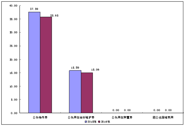 2019年度一般公共预算财政拨款“三公”经费支出决算数比2018年减少2.77万元,下降5%。其中:因公出国(境)费支出决算减少0万元,下降0%;公务用车购置及运行费支出决算减少0.83万元,下降5%;公务接待费支出决算减少1.94万元,下降5%。2019年度一般公共预算财政拨款“三公”经费支出决算减少的主要原因:是认真贯彻落实中央关于厉行节约的要求,严格控制公务接待标准及次数,从而减少公务接待支出费用;公务用车改革后,公务用车购置及运行维护支出费用减少。