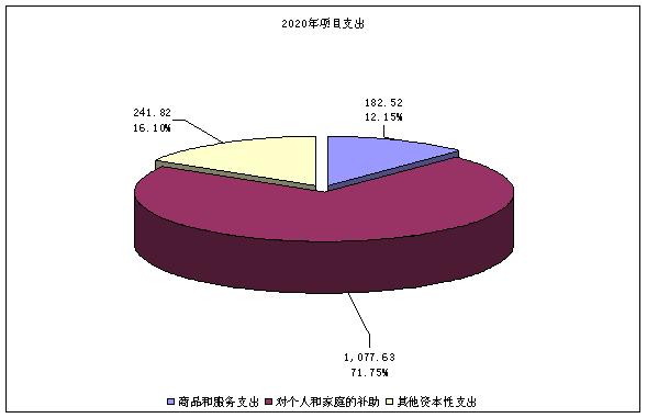 2020年度用于保障新村镇机关事业单位为完成特定的行政工作任务或事业发展目标,用于专项业务工作的经费支出1501.97万元。与上年对比,2019年项目支出1456.35万元,同比增加3.13%。增加主要原因是2019年度危房改造补助项目资金增加,各类扶贫项目资金增加,项目支出增加。包括商品和服务支出182.52万元占比8.97%,对个人和家庭的补助1077.63万元占比79.22%,资本性支出241.82万元占比11.81%。
