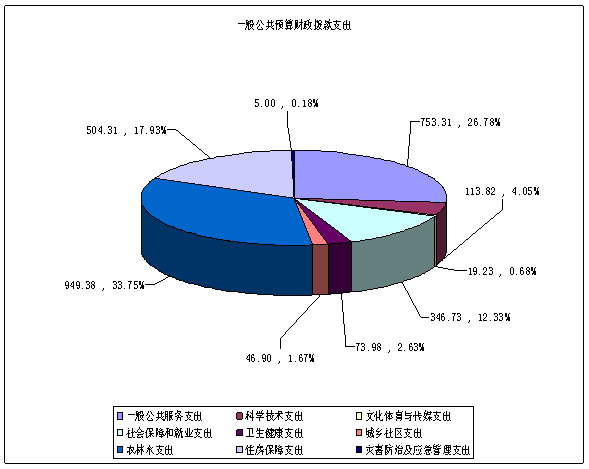 新村镇2020年度一般公共预算财政拨款支出2812.66万元,占本年支出合计的100%。与上年对比,2019年度2873.77万元,同比下降2.13%;下降的主要原因是2020年压缩公用经费10%,公用经费减少,基本支出减少,一般公共预算财政拨款支出。