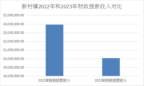 楚雄市新村镇2023年度收入合计20307411.36元。其中:财政拨款收入20307411.36元,占总收入的100.00%;上级补助收入0.00元,占总收入的0.00%;事业收入0.00元(含教育收费0元),占总收入的0.00%;经营收入0.00元,占总收入的0.00%;附属单位上缴收入0.00元,占总收入的0.00%;其他收入0.00元,占总收入的0.00%。与上年相比,收入合计减少3758098.57元,下降15.62%。其中:财政拨款收入减少3758098.57元,下降15.62%;上级补助收入减少0.00元,下降0%;事业收入减少0.00元,下降0%;经营收入减少0.00元,下降0%;附属单位上缴收入减少0.00元,下降0%;其他收入减少0.00元,下降0%。收入减少主要原因有:2022年补发部分村组干部工资,2023年正常发放,较上年基本支出减少;项目减少,项目支出类资金减少。