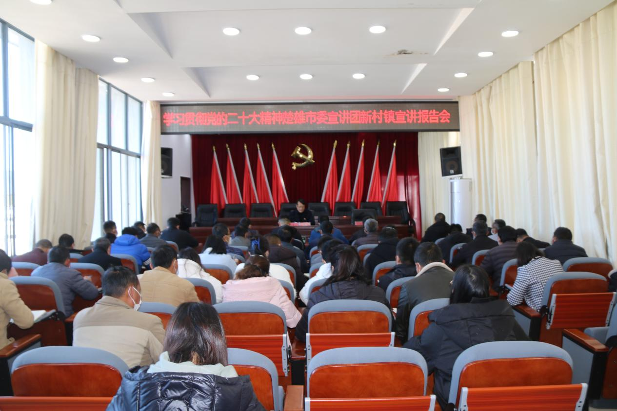 1月13日上午,市委宣讲团成员、市委常委、政法委书记邝华然到新村镇宣讲党的二十大精神。镇党政班子成员、全体干部职工、市属部门负责人、各村书记、驻村工作队长(第一书记),共计75人参加。