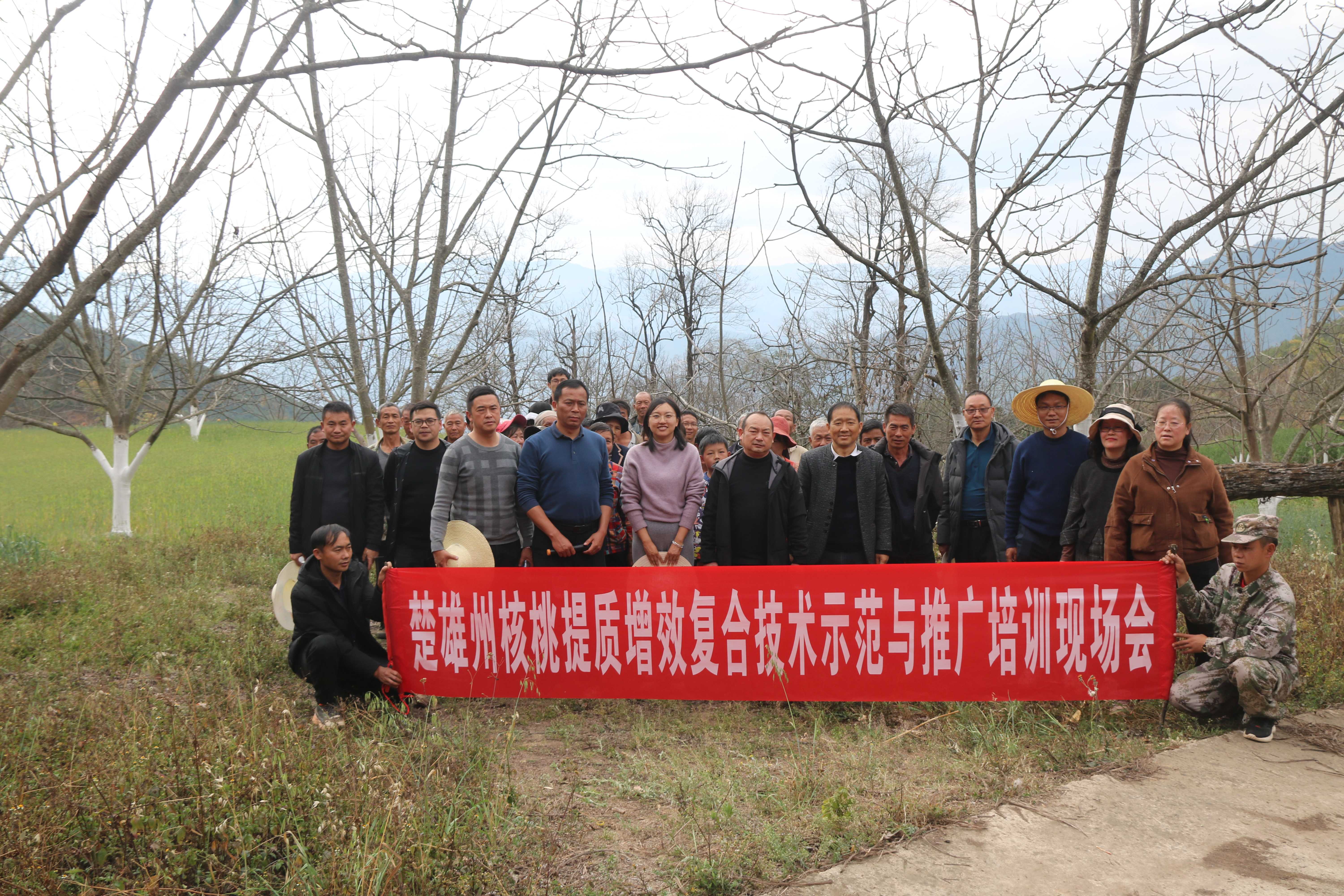 2023年2月2日,由云南省林业技术推广总站苏为耿副站长、苏智良工程师,云南省林业和草原科学院张雨教授、冯倩工程师,楚雄州林业和草原科学研究所周庆宏副所长,楚雄市林草局张凤成科长组成的专家组一行齐聚新村镇,举行楚雄州核桃提质增效复合技术示范与推广暨云南基层专家工作站项目启动签约仪式,新村镇党政班子、绿之源农业发展有限公司负责人参加了签约仪式。