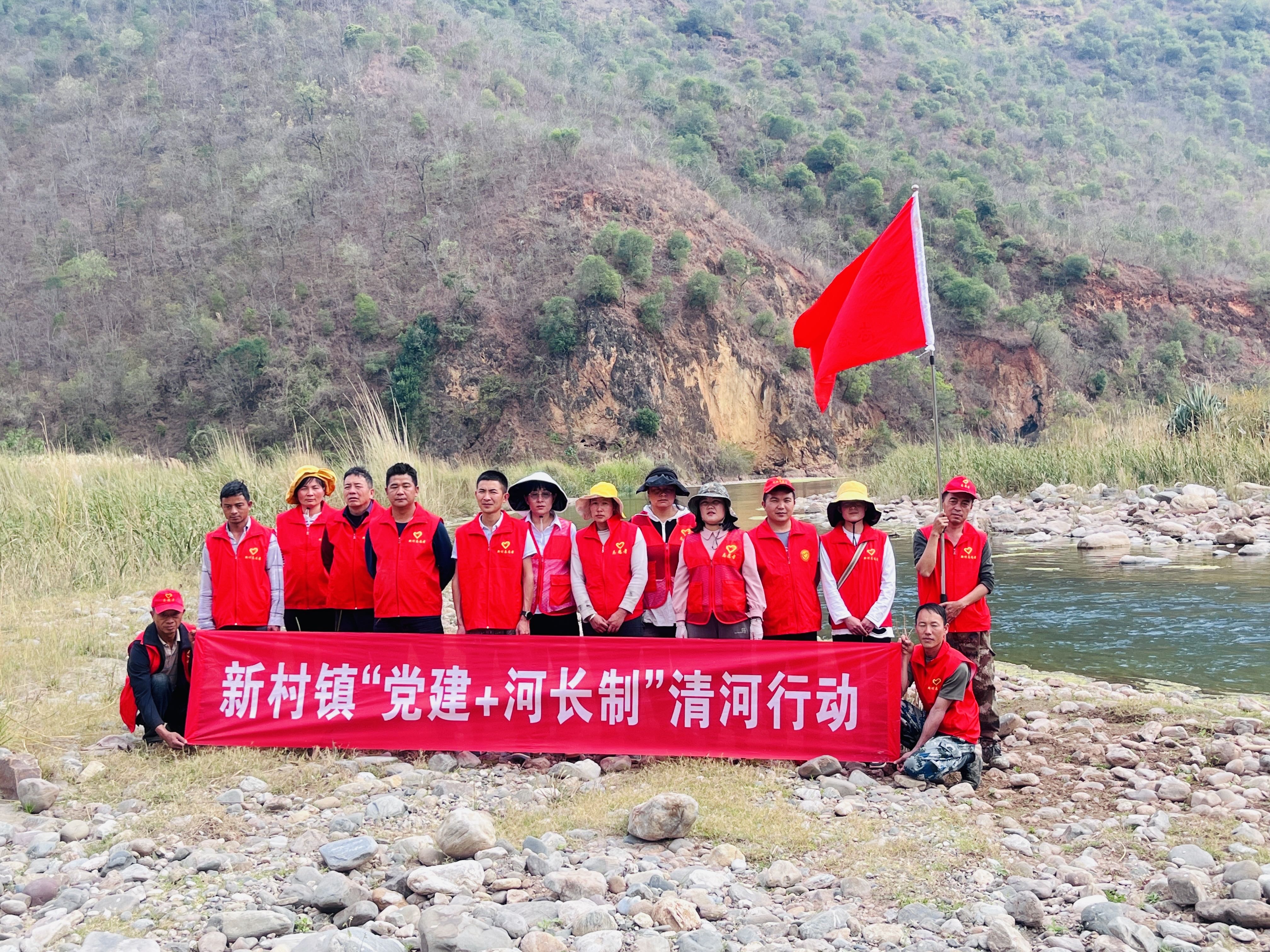 党建引领,强化清河效果。新村镇充分发挥党组织和党员在河湖保护治理中的先锋模范作用,发动党员联防联护,各支部在辖区河流沿岸积极开展“党建+河(湖)长制”主题党日活动,党员带头开展河道保洁,构建“党建引领、党员率先”的治河护河合力,引导群众养成保护环境,形成爱河护河的良好习惯。