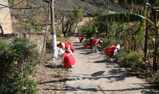 清洁环境靓家园,巾帼在行动,汇聚“她”力量。有一种美丽,蕴含着铿锵;有一种绽放,承载着担当。身穿红色马甲的女职工队伍活跃在村组、巷道,向群众宣传文明健康生活理念和绿色勤俭生活方式、帮助整理房前屋后乱堆乱放、庭院环境卫生,清理村庄路边杂草垃圾、河道卫生,在人居环境整治提升中充分发挥“半边天”作用。