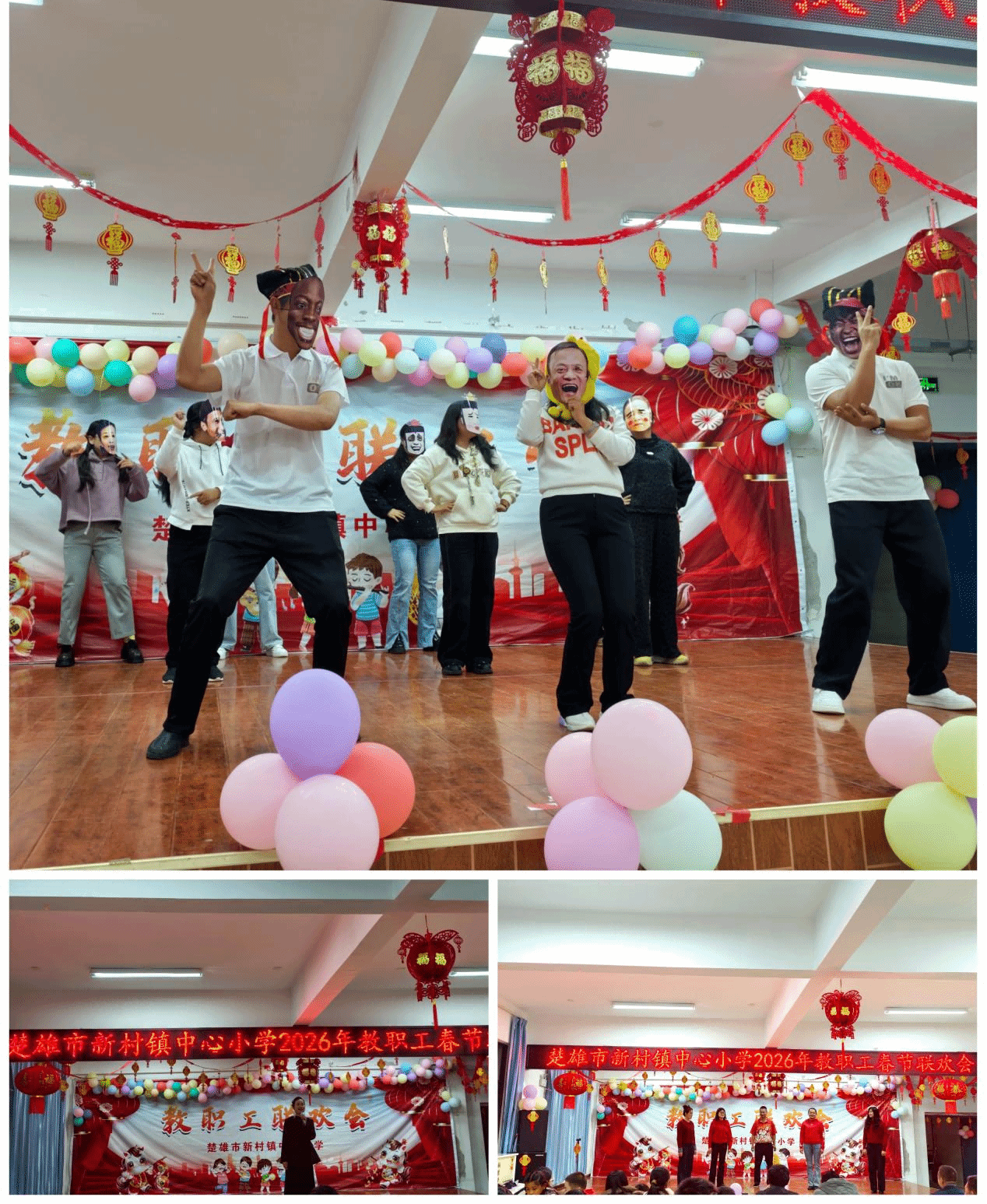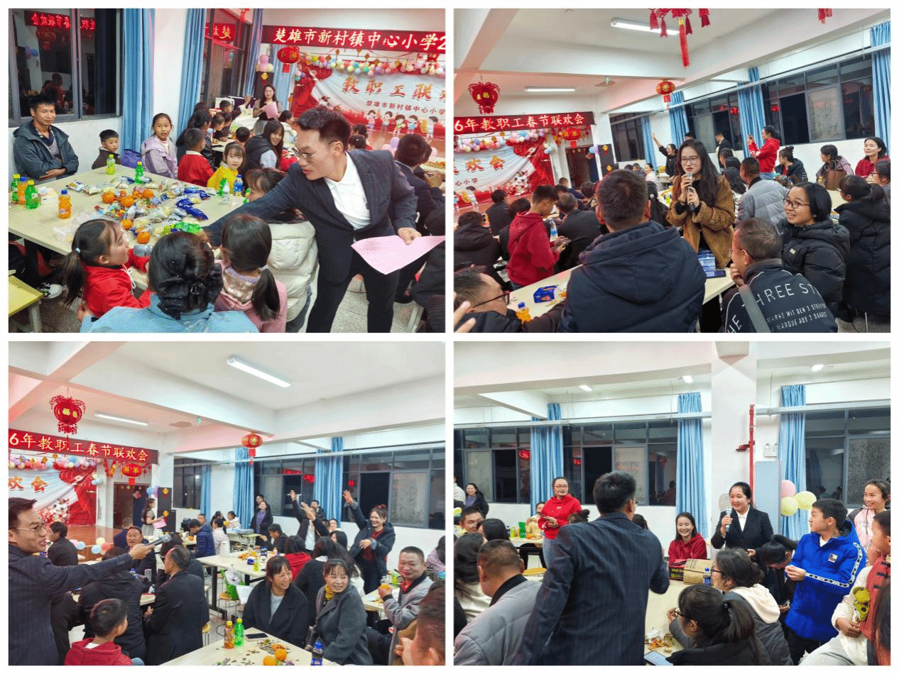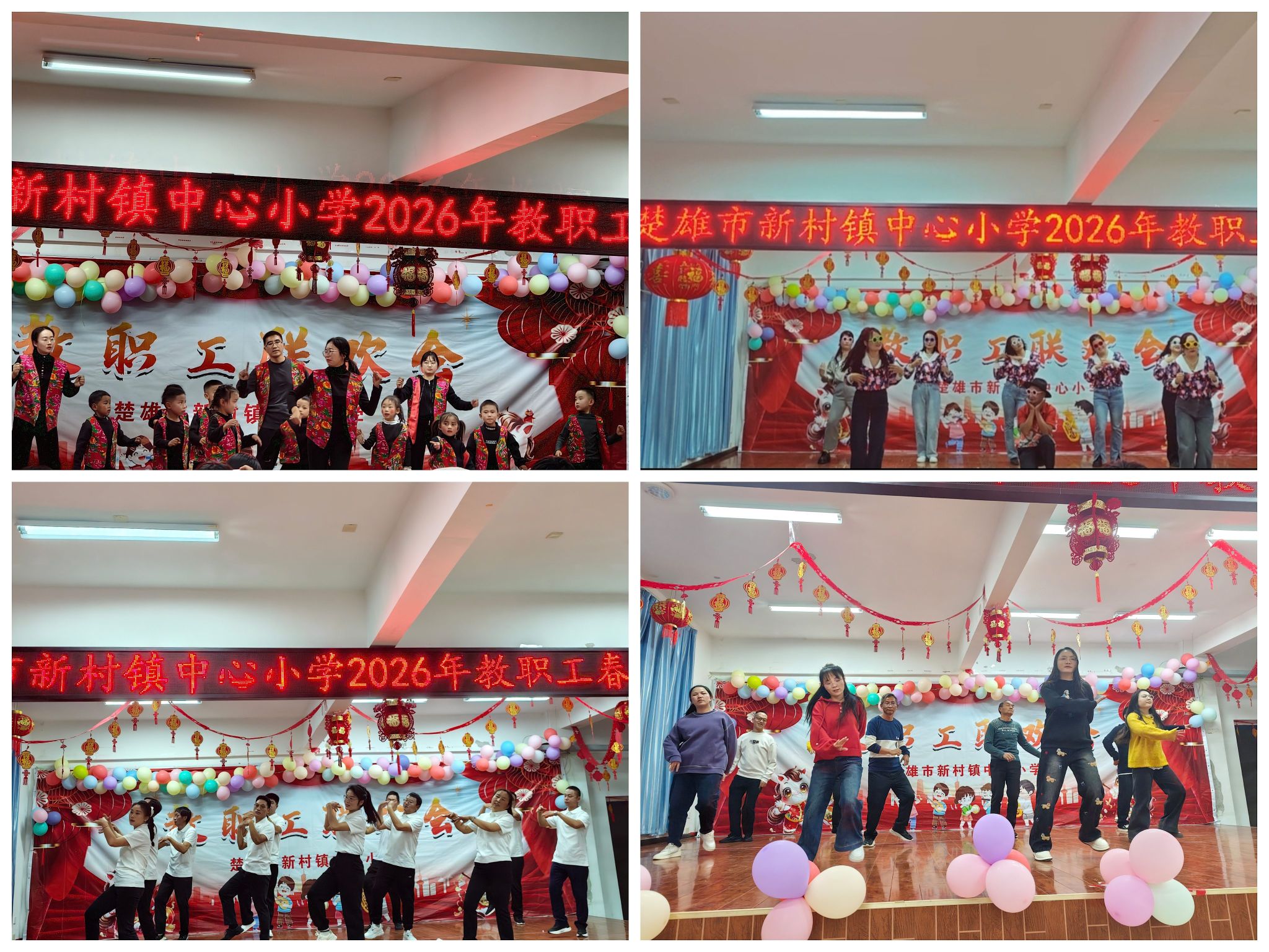 红灯笼裹满甜,暂别红笔赴团圆。一学期的忙碌刚歇,阅卷的红墨尚未升温,相逢的欢喜已满盈!新村镇中心小学的活动室已被红绸与灯笼织成暖巢:LED屏亮着“2026教职工春节联欢会”的红字,彩气球顺着背景板垂成缤纷的帘,连桌上的橘子与花生,都裹着新春的甜香。刚从试卷堆里抬头的老师们,笑着卸下沉甸甸的红笔,转身就撞进这场“专属团圆”的“家人宴”里。