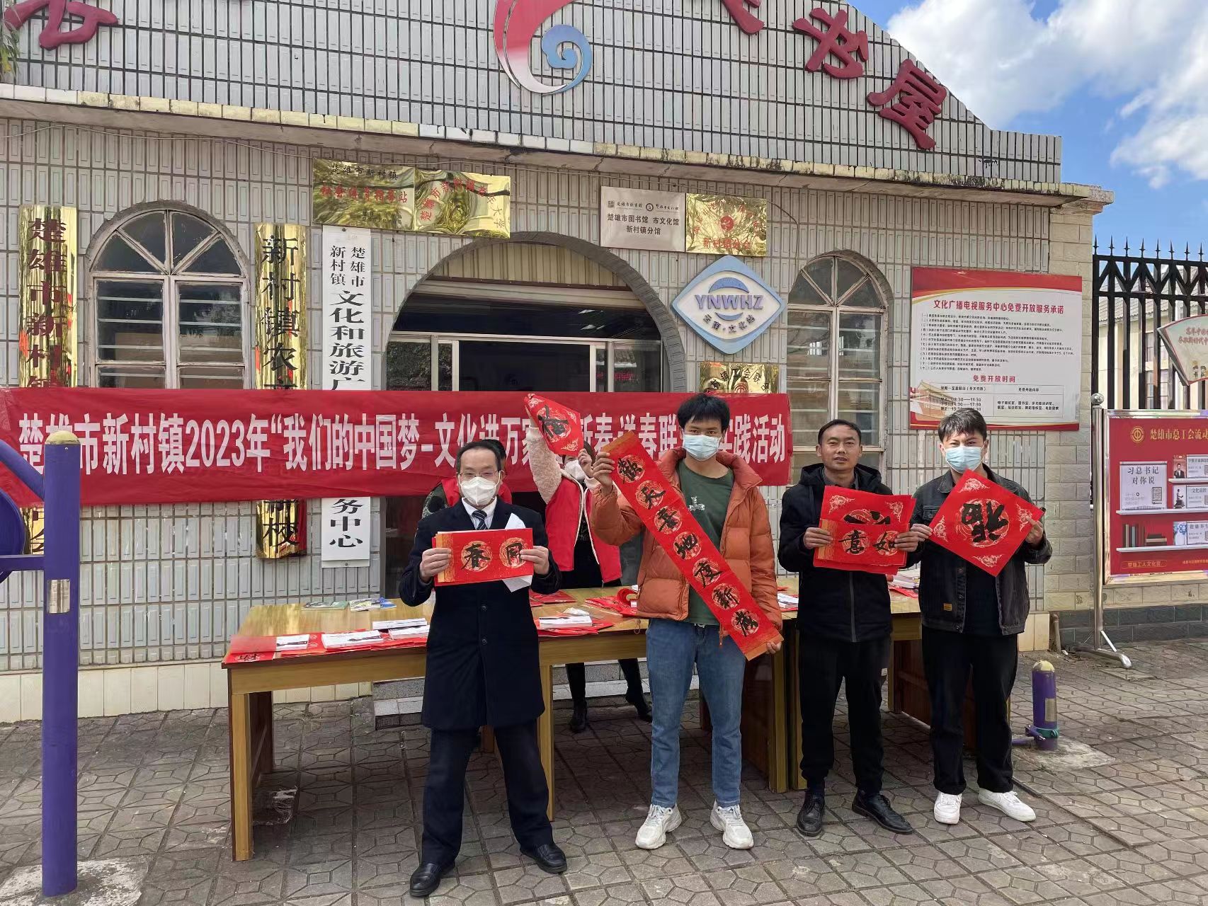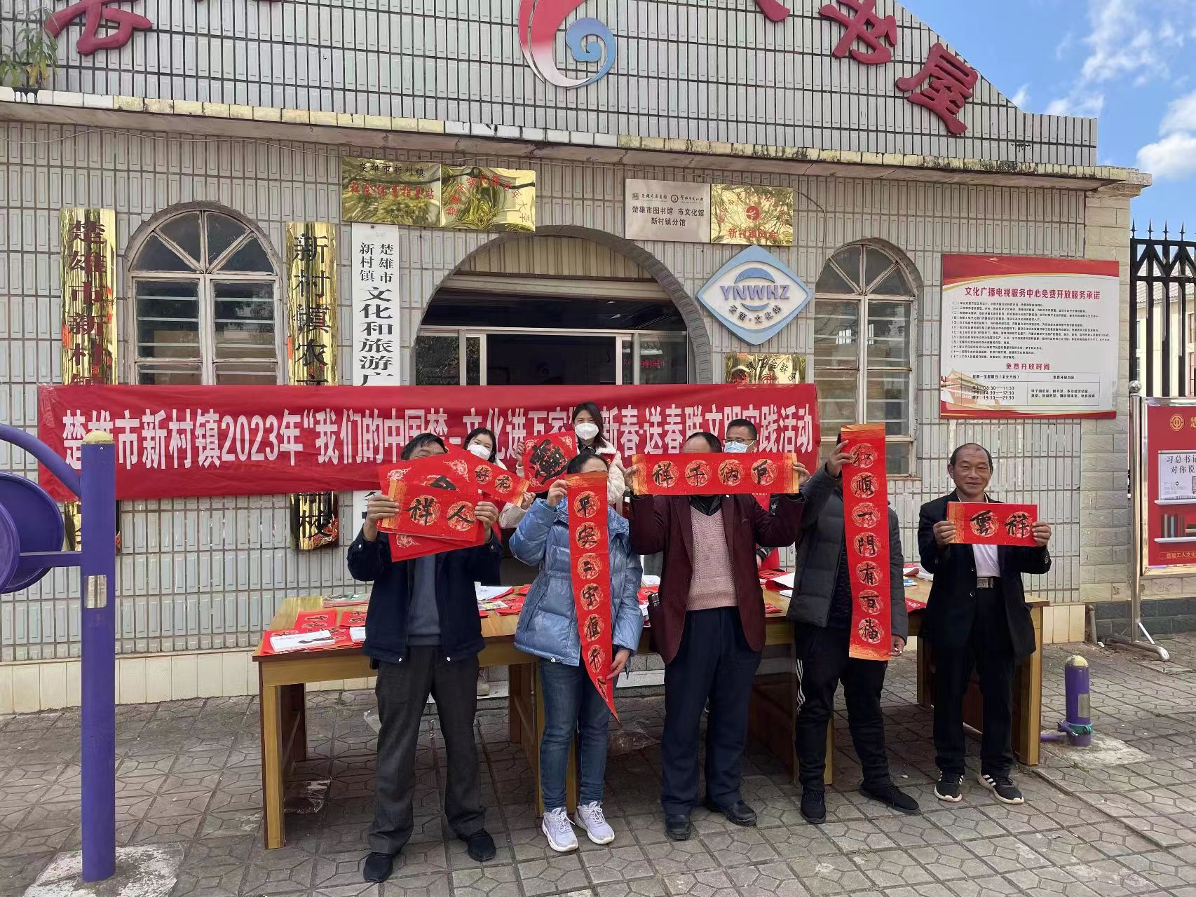 卯门生喜气,兔岁报新春。为深入学习宣传贯彻党的二十大精神,弘扬中华优秀传统文化,用喜庆、温馨、和谐的气氛迎接兔年到来,1月11日,新村镇组织开展2023年“我们的中国梦,文化进万家”迎新春送春联文明实践活动。
