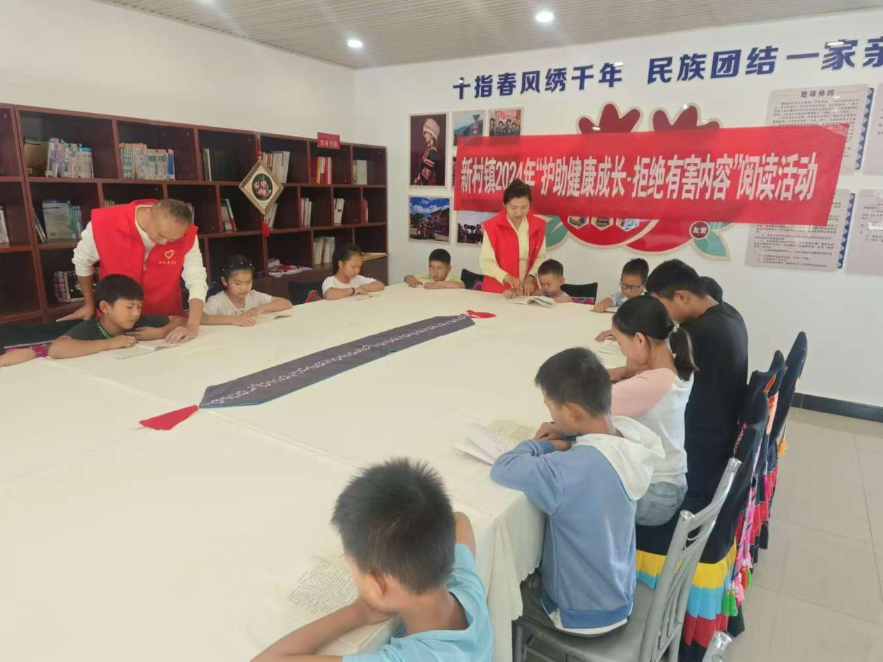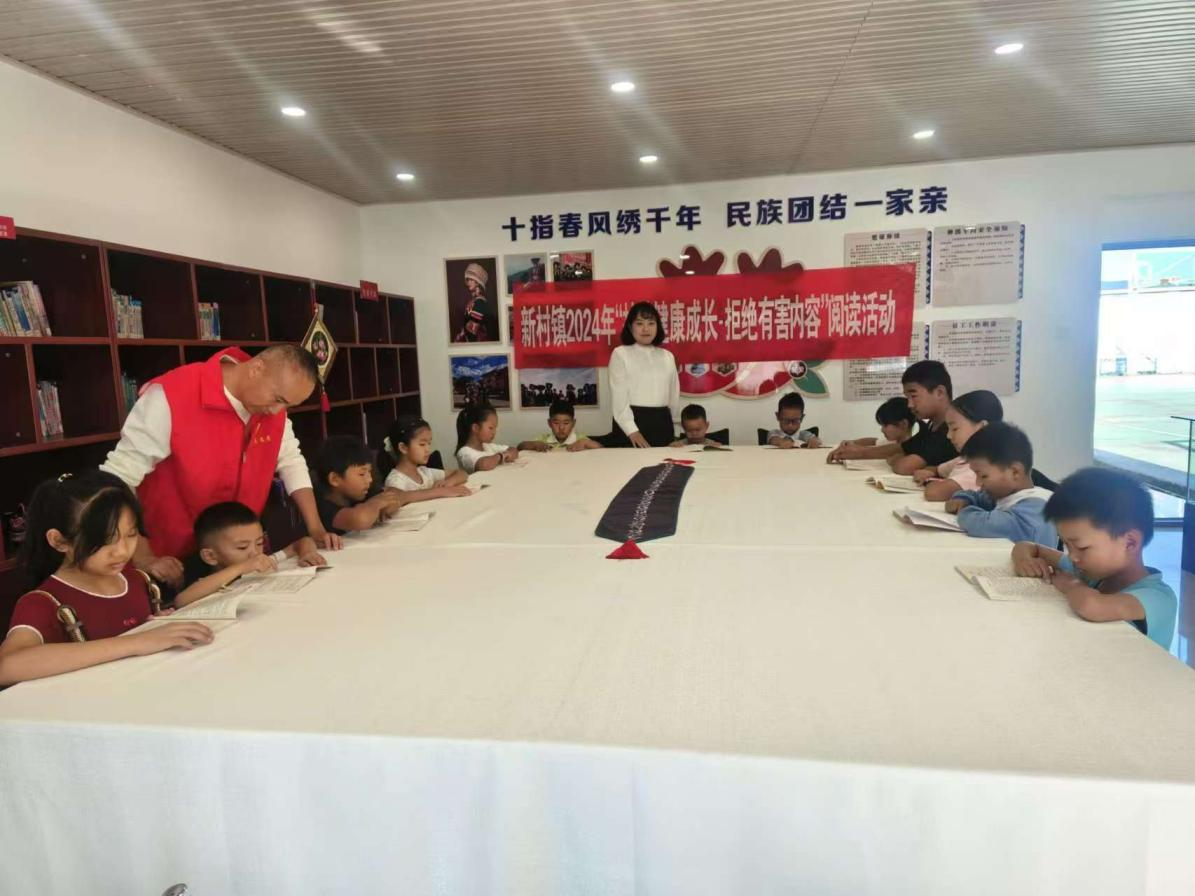 为大力营造全社会关心关爱未成年人健康成长的良好氛围,深入推进“扫黄打非”工作,护航少年儿童健康成长,构建纯净的绿色阅读环境,引导少年儿童自觉抵制非法出版物,提升未成年对非法有害出版物及有害信息的鉴别能力和防范意识,按照《楚雄市2024年“扫黄打非”行动方案》部署,新村镇以“护助健康成长·拒绝有害内容”为主题,开展2024年全民阅读暨“护苗·绿书签”活动。