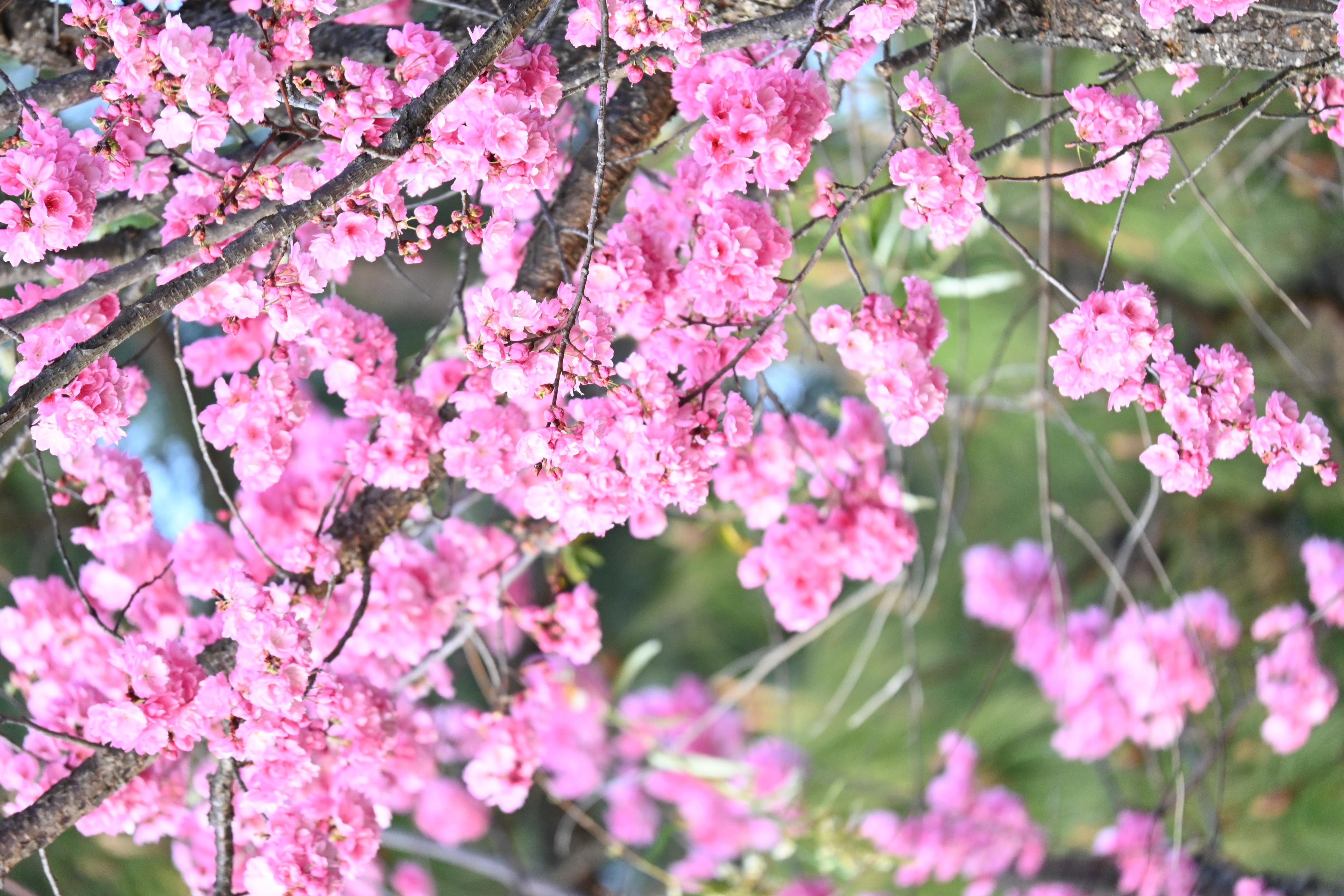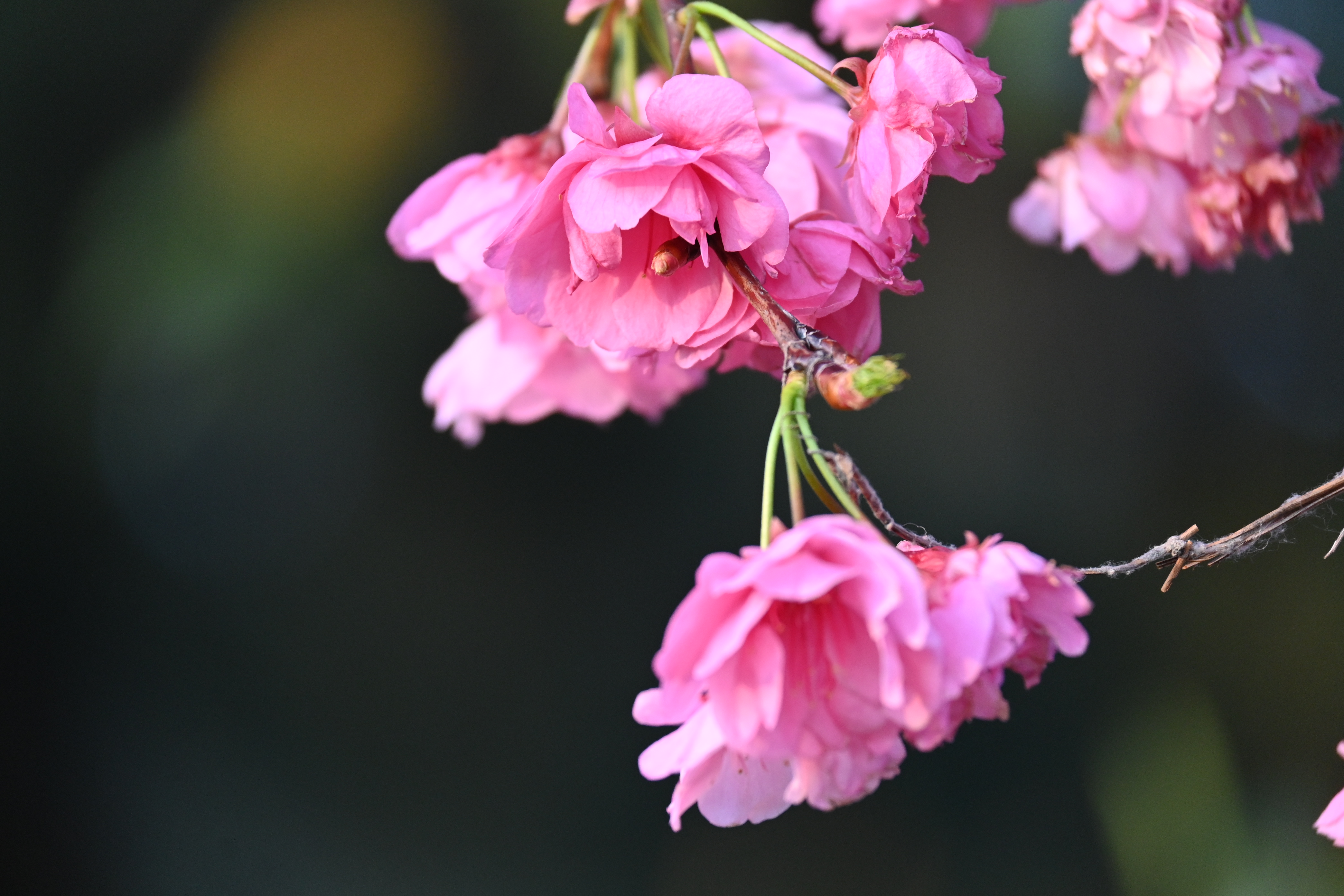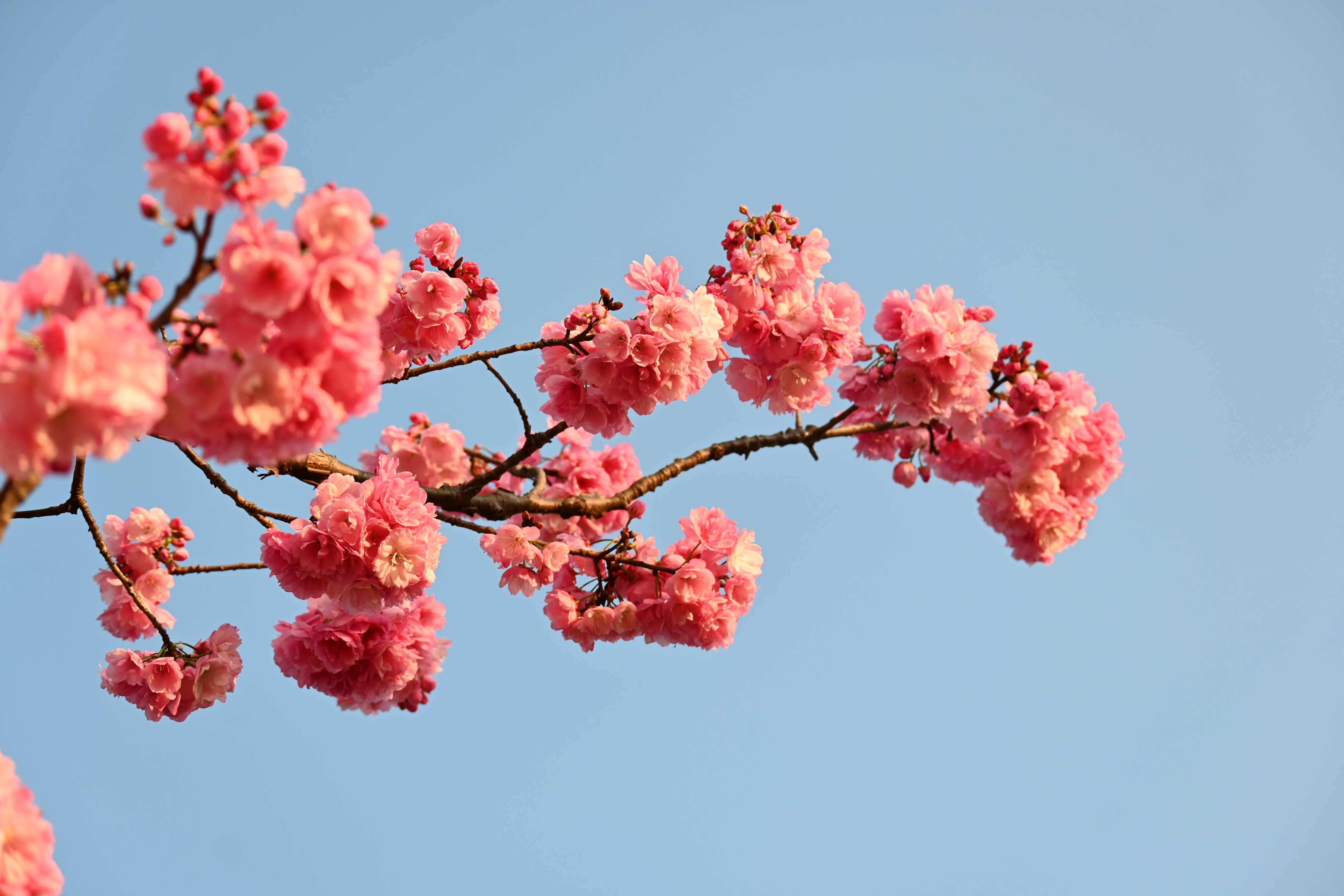 暮色里看樱又是另一番况味。八重樱层层叠叠裹着斜阳,像烧到最后的沉香屑,在渐暗的天色里明明灭灭。它们或粉或白,密密麻麻地挂满枝头,宛如片片轻云落在树梢,又似晨曦中羞涩的少女脸颊上的红晕,纯洁而又充满生机。