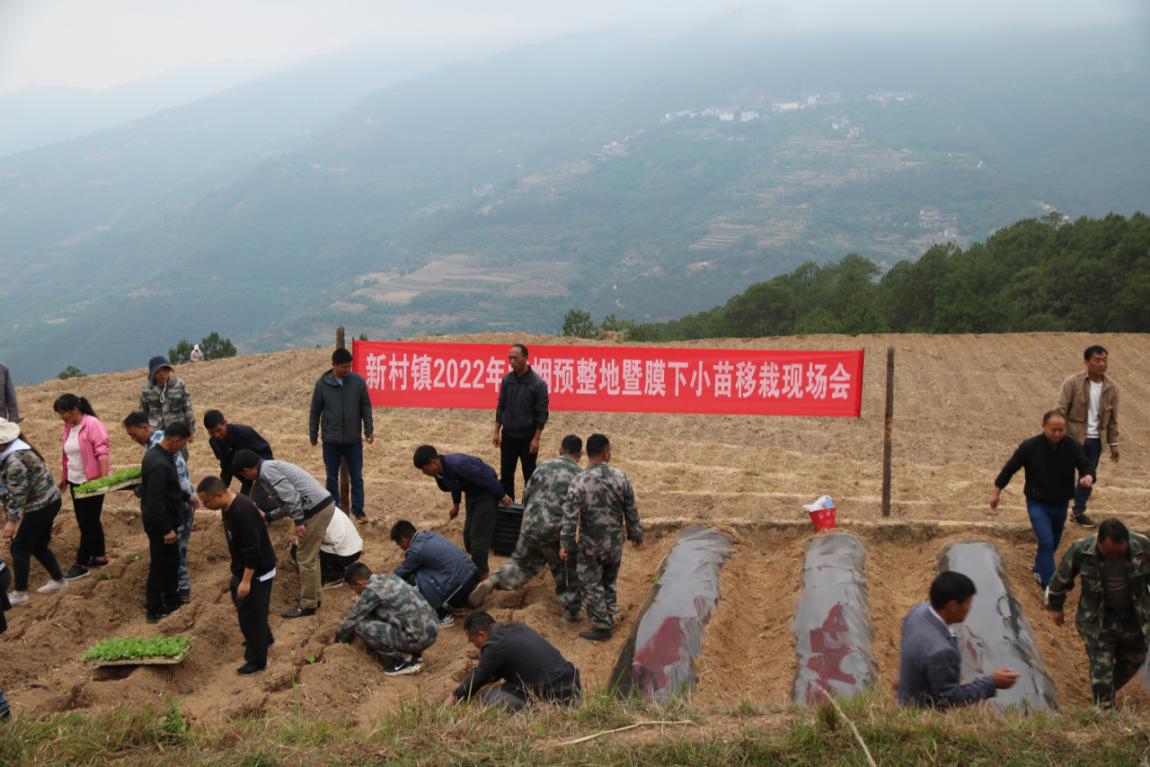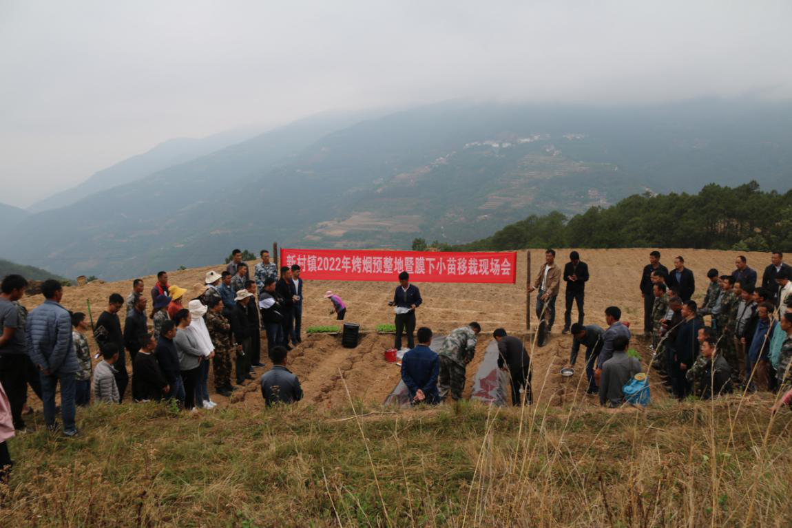 4月18日,新村镇2022年烤烟预整地暨烤烟移栽现场会在巨龙村委会凹舍子小组组织召开,吹响了2022年度烤烟移栽号角。镇党政班子全体、镇下乡工作队队长及全体工作队员、8个村书记(主任)、新村烟叶站全体职工及烤烟辅导员参加了会议。
