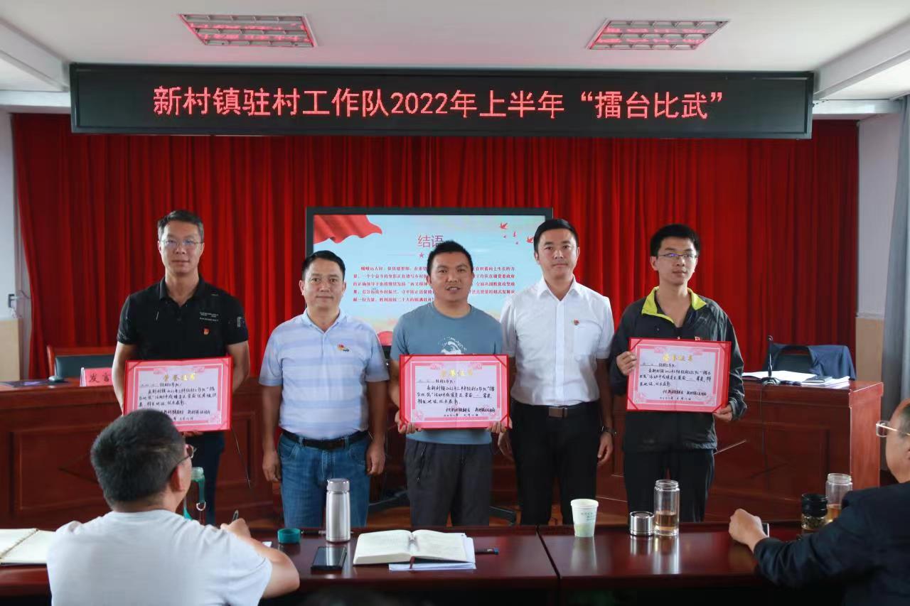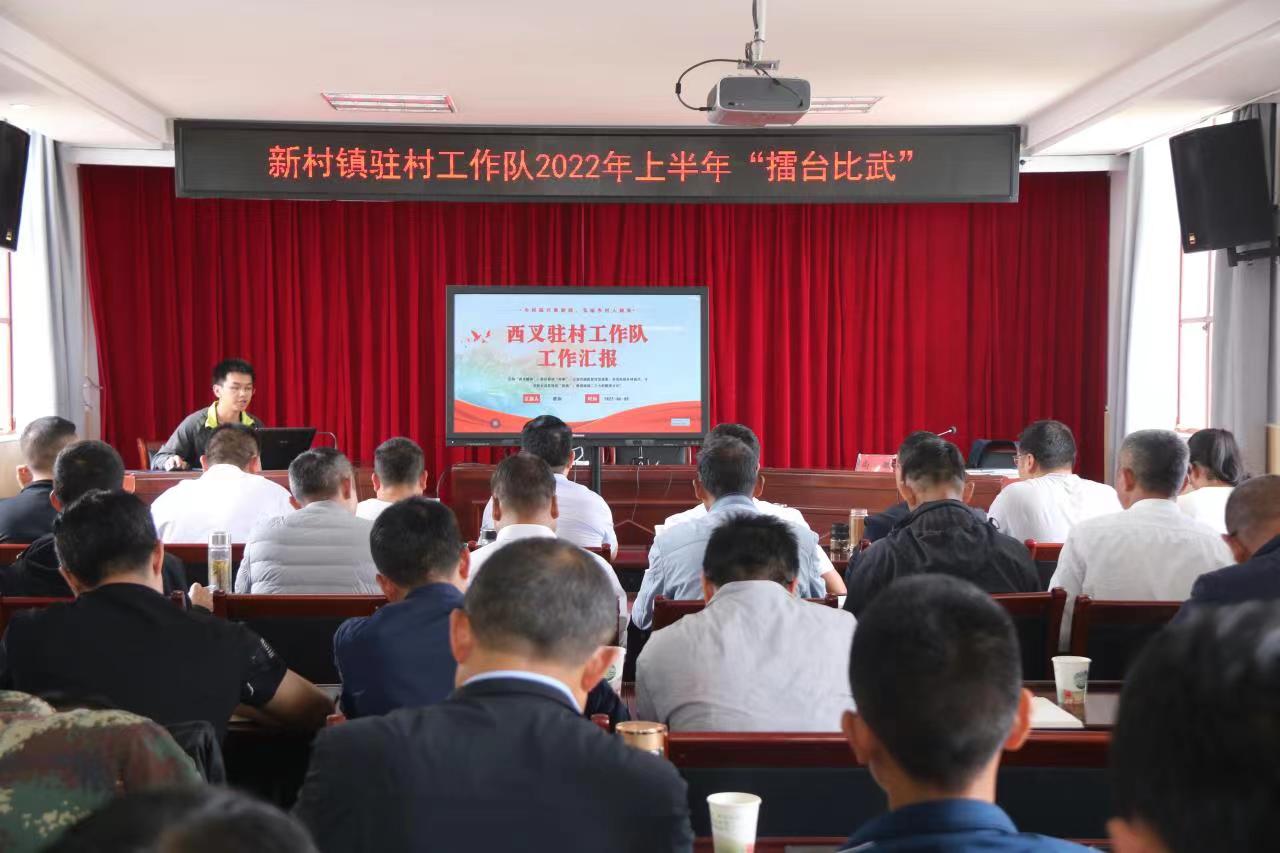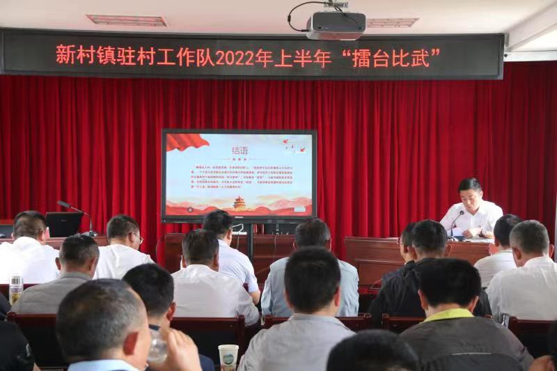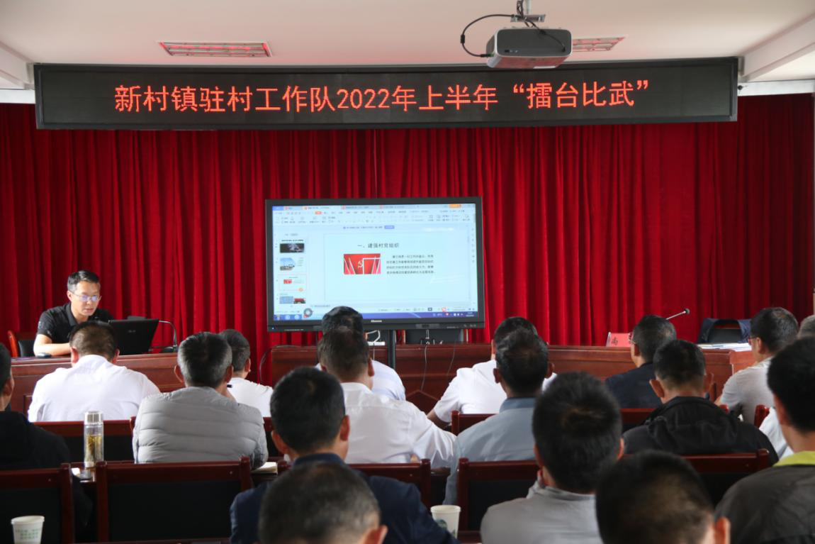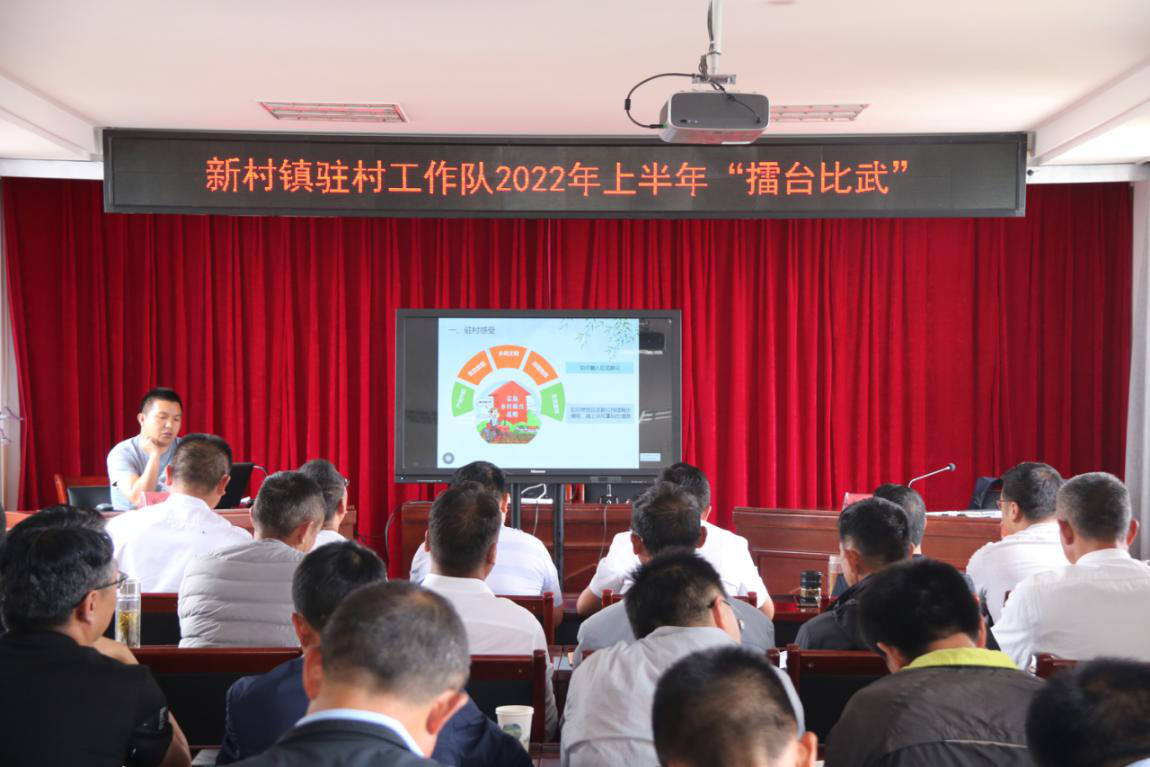 为锻造一支“有担当、敢作为、爱比拼”的新时代乡村振兴驻村工作队,2022年6月8日下午,新村镇用典型引路法,组织3支驻村工作队,开展驻村工作队上半年“擂台比武”活动。