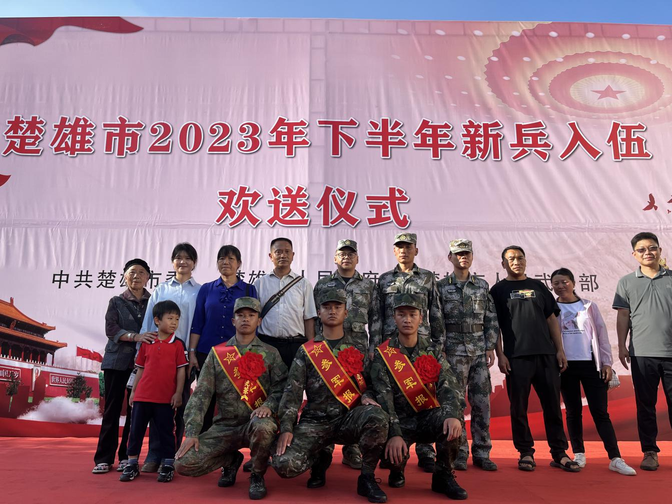 2023年9月15日下午,楚雄市隆重举行2023年下半年新兵入伍欢送仪式,新村镇3名新兵带着家乡信任的祝福和期盼,踏上军旅征程。