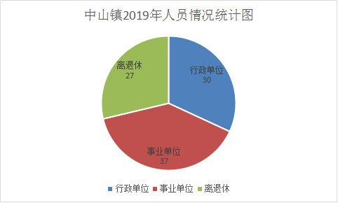 楚雄州楚雄市中山镇2019年末实有人员编制77人。其中:行政编制32人(含行政工勤编制0人),事业编制45人(含参公管理事业编制4人);在职在编实有行政人员30人(含行政工勤人员0人),事业人员37人(含参公管理事业人员2人),其他人员33人,主要是村三职。