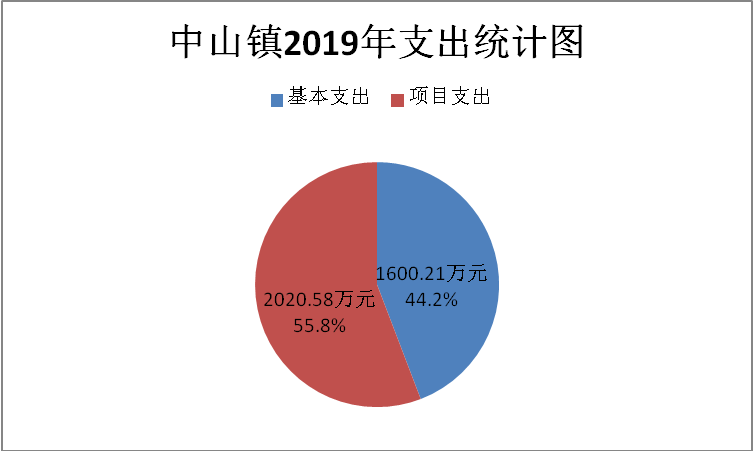 楚雄州楚雄市中山镇2019年度支出合计3,620.79万元。其中:基本支出1,600.21万元,占总支出的44.2%;项目支出2,020.58万元,占总支出的55.8%;上缴上级支出、经营支出、对附属单位补助支出共0万元,占总支出的0%。与上年对比增加392.99万元,主要原因是村委会干部待遇提高,基础设施项目建设增加。