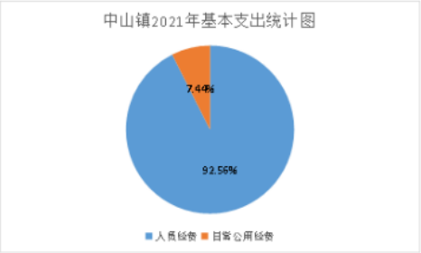 2021年度用于保障楚雄州楚雄市中山镇机关、下属事业单位等机构正常运转的日常支出1,594.15万元。与上年对比增加166.01万元,主要原因是人员增加。包括基本工资、津贴补贴等人员经费支出1,475.50万元,占基本支出的92.56%。办公费、印刷费、水电费、办公设备购置等公用经费118.65万元,占基本支出的7.44%。