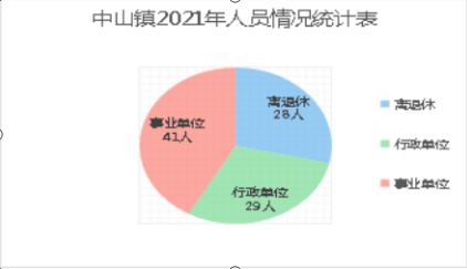 楚雄州楚雄市中山镇部门2021年末实有人员编制78人。其中:行政编制32人(含行政工勤编制0人),事业编制46人(含参公管理事业编制4人);在职在编实有行政人员29人(含行政工勤人员6人),事业人员41人(含参公管理事业人员2人)。