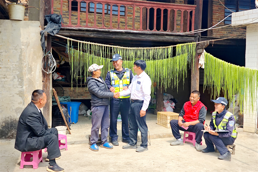 民警深耕基层、熟稔乡情,坚持将“法理情”相结合,聚焦婚恋、土地、涉旅消费等群众急难愁盼,将各类矛盾纠纷化解在萌芽状态、化解在基层一线。2025年以来,依托这一家门口的调解模式,派出所成功化解各类矛盾纠纷123起,纠纷类警情同比下降32%,“小事不出村、矛盾不过夜”的基层治理目标在中山镇落地生根、开花结果。