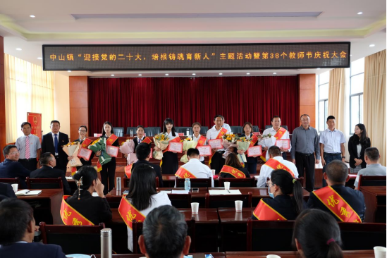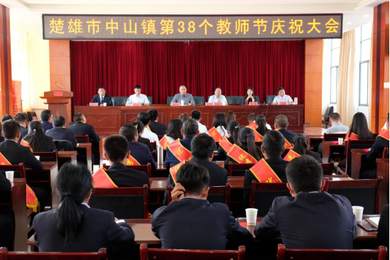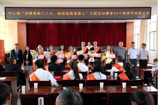 金秋九月,硕果盈枝。为表彰全镇教育工作中做出优秀成绩的先进集体和先进个人,弘扬高尚师德和奉献精神,进一步激发广大教职工的积极性、主动性和创造性,开创全乡教育工作新局面。在第38个教师节来临之际,9月8日下午,中山镇召开庆祝第38个教师节庆祝大会,镇党政班子成员,中山中学、小学中层以上教师,各完小校长及受表彰教师共计70余人参加会议。