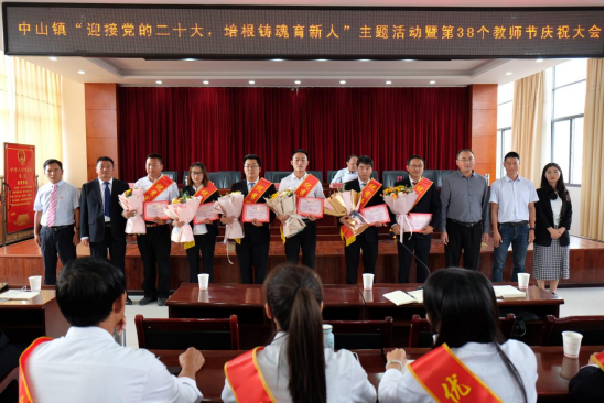 大会对9个先进集体、11名教育工作先进个人,6名教育优秀管理者、30名优秀教师、19名优秀班主任、14名优秀教育工作者进行了表扬。镇党委、政府对中山中学、小学全体教师表示慰问,并安排了慰问金;同时,转达了市委、市政府对广大教育工作者的关心和问候。