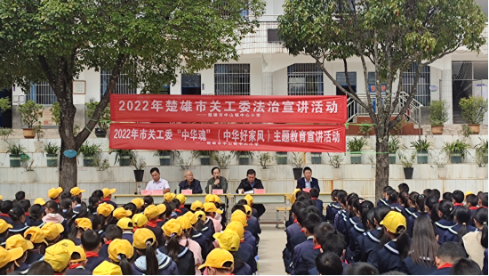 9月14日下午,楚雄市关工委刘宝生一行到中山镇中心小学开展2022年“中华魂”(中华好家风)暨法治宣讲活动。